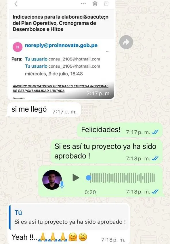 Desde el día 1 me dio mucha confianza. Juancarlos ha vivido lo que yo deseo, él mismo lo ha ganado. Me hacía preguntas muy precisas y profundas para darle forma a mi proyecto y hacer mi postulación más efectiva..